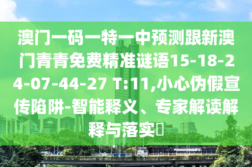 澳門一碼一特一中預(yù)測(cè)跟新澳門青青免費(fèi)精準(zhǔn)謎語15-18-24-07-44-27 T:11的智能釋義、專家解讀解釋與落實(shí)?