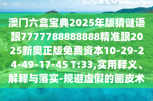 澳門六盒寶典2025年版猜謎語跟7777788888888精準跟2025新奧正版免費資本10-29-24-49-17-45 T:33,實用釋義、解釋與落實-規(guī)避虛假的畫皮術(shù)