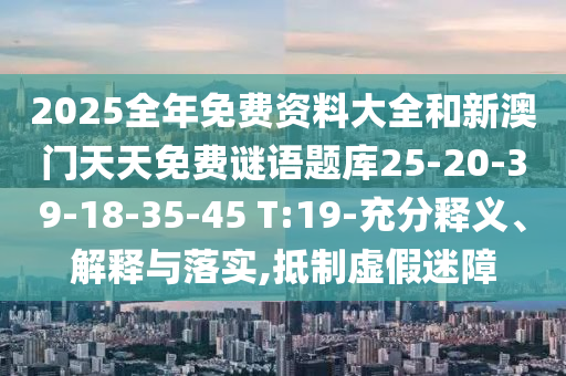 2025全年免費(fèi)資料大全和新澳門天天免費(fèi)謎語題庫25-20-39-18-35-45 T:19-充分釋義、解釋與落實,抵制虛假迷障