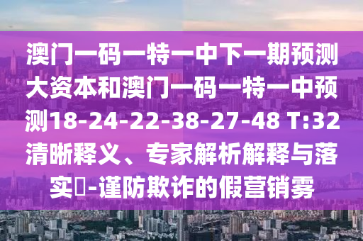 澳門一碼一特一中下一期預(yù)測大資本和澳門一碼一特一中預(yù)測18-24-22-38-27-48 T:32:清晰釋義、專家解析解釋與落實?
