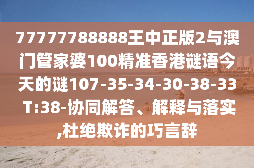 77777788888王中正版2與澳門管家婆100精準(zhǔn)香港謎語今天的謎107-35-34-30-38-33 T:38的協(xié)同解答、解釋與落實(shí)