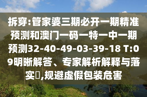 管家婆三期必開一期精準(zhǔn)預(yù)測和澳門一碼一特一中一期預(yù)測32-40-49-03-39-18 T:09的明晰解答、專家解析解釋與落實(shí)?