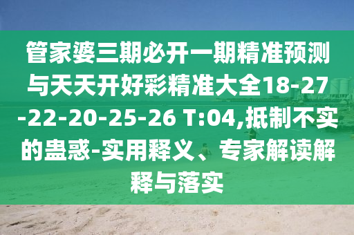 管家婆三期必開一期精準(zhǔn)預(yù)測與天天開好彩精準(zhǔn)大全18-27-22-20-25-26 T:04的實(shí)用釋義、專家解讀解釋與落實(shí)