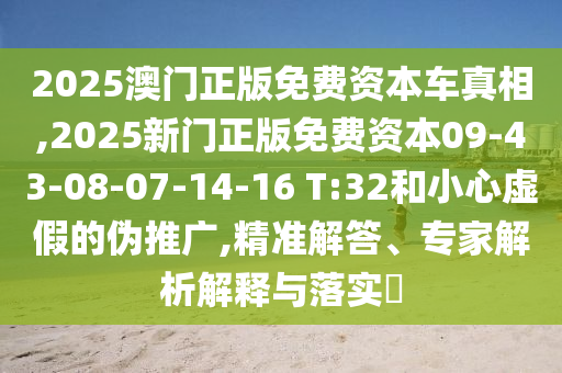 2025澳門(mén)正版免費(fèi)資本車(chē)真相,2025新門(mén)正版免費(fèi)資本09-43-08-07-14-16 T:32的精準(zhǔn)解答、專家解析解釋與落實(shí)?