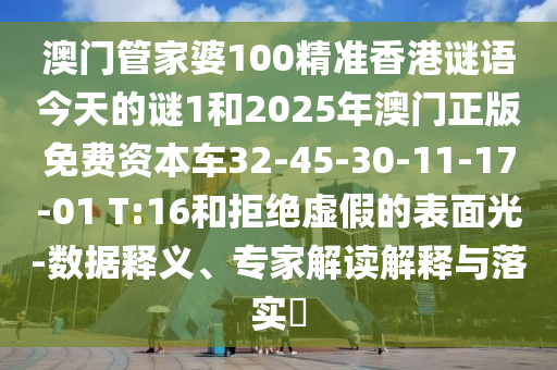 澳門管家婆100精準香港謎語今天的謎1和2025年澳門正版免費資本車32-45-30-11-17-01 T:16和拒絕虛假的表面光-數(shù)據(jù)釋義、專家解讀解釋與落實?