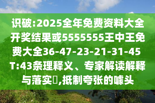識(shí)破:2025全年免費(fèi)資料大全開獎(jiǎng)結(jié)果或5555555王中王免費(fèi)大全36-47-23-21-31-45 T:43條理釋義、專家解讀解釋與落實(shí)?,抵制夸張的噱頭