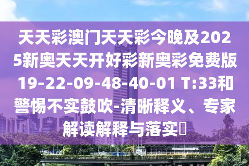 天天彩澳門天天彩今晚及2025新奧天天開好彩新奧彩免費版19-22-09-48-40-01 T:33和警惕不實鼓吹-清晰釋義、專家解讀解釋與落實?