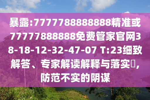 7777788888888精準(zhǔn)或77777888888免費管家官網(wǎng)38-18-12-32-47-07 T:23的細致解答、專家解讀解釋與落實?