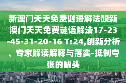 新澳門天天免費謎語解法跟新澳門天天免費謎語解法17-23-45-31-20-16 T:24,創(chuàng)新分析、專家解讀解釋與落實-抵制夸張的噱頭