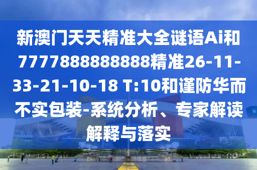關(guān)于新澳門天天精準(zhǔn)大全謎語Ai和7777888888888精準(zhǔn)26-11-33-21-10-18等相關(guān)內(nèi)容的全面釋義、專家解讀與落實及警惕虛假宣傳的系統(tǒng)分析