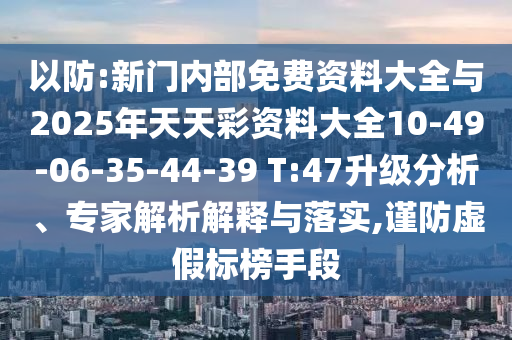 新門內(nèi)部免費資料大全與2025年天天彩資料大全10-49-06-35-44-39 T:47:升級分析、專家解析解釋與落實
