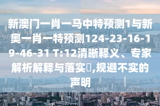 新澳門一肖一馬中特預測1與新奧一肖一特預測124-23-16-19-46-31 T:12:清晰釋義、專家解析解釋與落實?