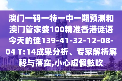 澳門一碼一特一中一期預(yù)測和澳門管家婆100精準香港謎語今天的謎139-41-32-12-08-04 T:14成果分析、專家解析解釋與落實,小心虛假鼓吹