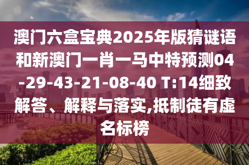 澳門六盒寶典2025年版猜謎語和新澳門一肖一馬中特預測04-29-43-21-08-40 T:14的細致解答、解釋與落實
