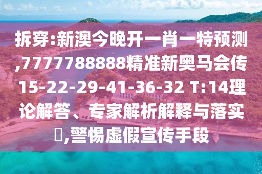 拆穿:新澳今晚開一肖一特預測,7777788888精準新奧馬會傳15-22-29-41-36-32 T:14理論解答、專家解析解釋與落實?,警惕虛假宣傳手段