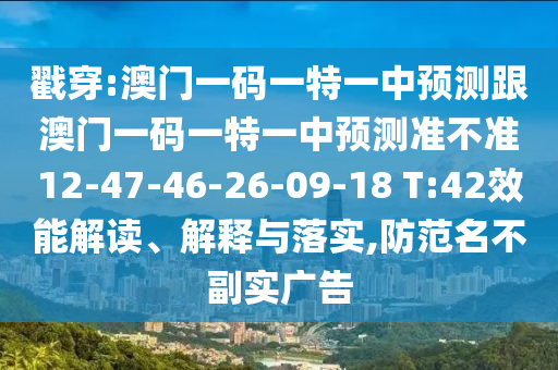 戳穿:澳門一碼一特一中預(yù)測跟澳門一碼一特一中預(yù)測準(zhǔn)不準(zhǔn)12-47-46-26-09-18 T:42效能解讀、解釋與落實(shí),防范名不副實(shí)廣告