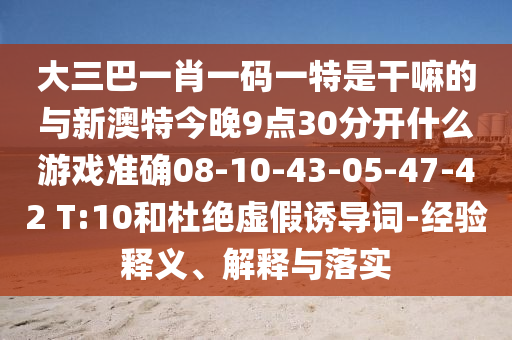 大三巴一肖一碼一特是干嘛的與新澳特今晚9點(diǎn)30分開什么游戲準(zhǔn)確08-10-43-05-47-42 T:10和杜絕虛假誘導(dǎo)詞-經(jīng)驗(yàn)釋義、解釋與落實(shí)