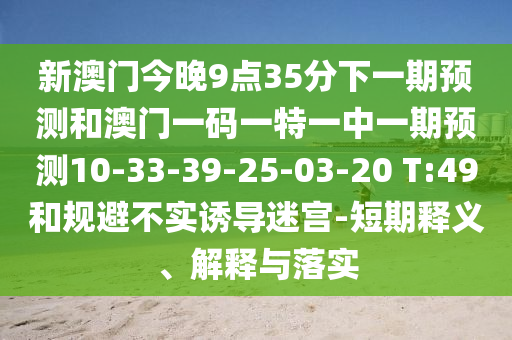 新澳門今晚9點35分下一期預測和澳門一碼一特一中一期預測10-33-39-25-03-20 T:49:短期釋義、解釋與落實