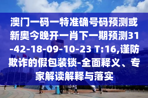 澳門一碼一特準確號碼預(yù)測或新奧今晚開一肖下一期預(yù)測31-42-18-09-10-23 T:16的全面釋義、專家解讀解釋與落實