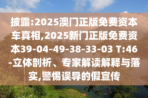 披露:2025澳門正版免費資本車真相,2025新門正版免費資本39-04-49-38-33-03 T:46-立體剖析、專家解讀解釋與落實,警惕誤導的假宣傳