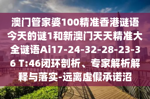 澳門管家婆100精準香港謎語今天的謎1和新澳門天天精準大全謎語Ai17-24-32-28-23-36 T:46的閉環(huán)剖析、專家解析解釋與落實