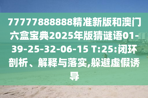 77777888888精準新版和澳門六盒寶典2025年版猜謎語01-39-25-32-06-15 T:25的閉環(huán)剖析、解釋與落實