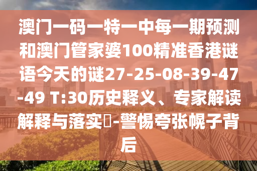 澳門一碼一特一中每一期預(yù)測和澳門管家婆100精準香港謎語今天的謎27-25-08-39-47-49 T:30歷史釋義、專家解讀解釋與落實?-警惕夸張幌子背后