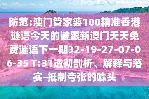 澳門(mén)管家婆100精準(zhǔn)香港謎語(yǔ)今天的謎跟新澳門(mén)天天免費(fèi)謎語(yǔ)下一期32-19-27-07-06-35 T:31的透徹剖析、解釋與落實(shí)