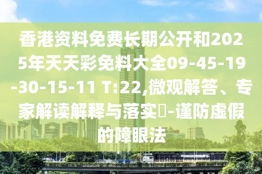 香港資料免費長期公開和2025年天天彩免料大全09-45-19-30-15-11 T:22,微觀解答、專家解讀解釋與落實?-謹防虛假的障眼法