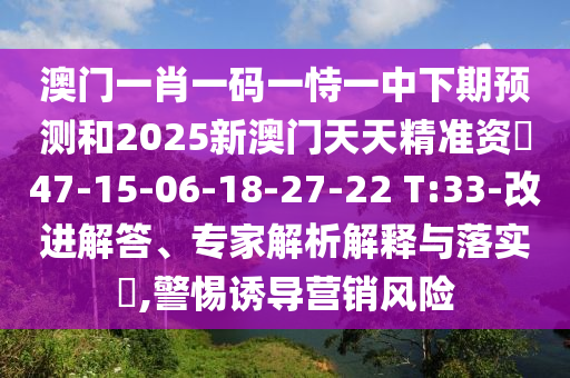 澳門一肖一碼一恃一中下期預(yù)測(cè)和2025新澳門天天精準(zhǔn)資枓47-15-06-18-27-22 T:33:改進(jìn)解答、專家解析解釋與落實(shí)?