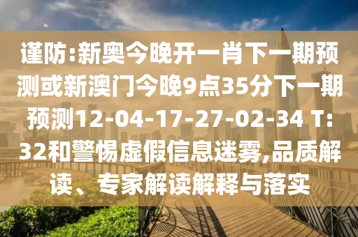 大家好!我想與大家探討關于謹防虛假預測信息的話題,特別是關于新奧今晚開一肖下一期預測和新澳門今晚9點35分下一期預測等關鍵詞的討論,我們也將對品質(zhì)解讀、專家解讀進行解釋和落實,以提醒公眾警惕虛假宣傳的陷阱。