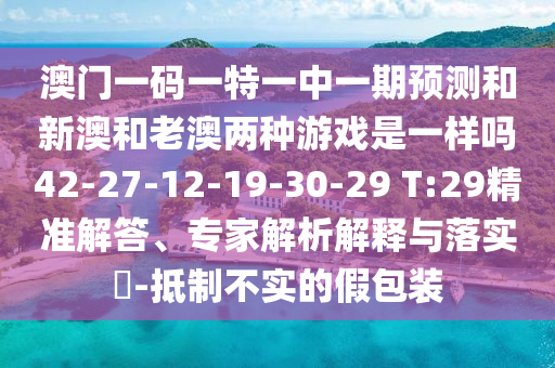 澳門一碼一特一中一期預(yù)測和新澳和老澳兩種游戲是一樣嗎42-27-12-19-30-29 T:29精準(zhǔn)解答、專家解析解釋與落實?-抵制不實的假包裝