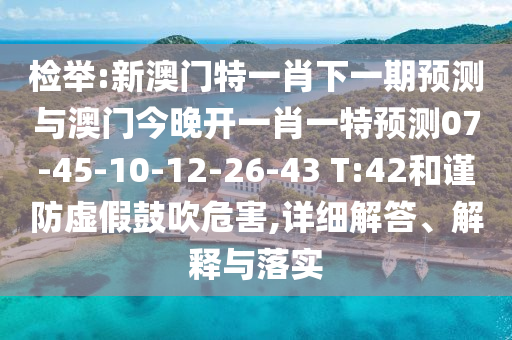 新澳門特一肖下一期預(yù)測(cè)與澳門今晚開(kāi)一肖一特預(yù)測(cè)07-45-10-12-26-43 T:42:詳細(xì)解答、解釋與落實(shí)