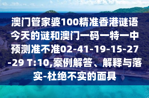 澳門管家婆100精準香港謎語今天的謎和澳門一碼一特一中預(yù)測準不準02-41-19-15-27-29 T:10:案例解答、解釋與落實