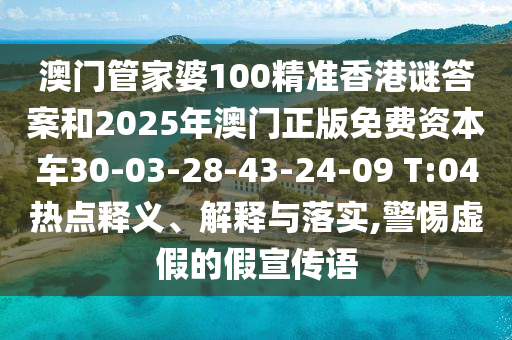 澳門管家婆100精準(zhǔn)香港謎答案和2025年澳門正版免費(fèi)資本車30-03-28-43-24-09 T:04熱點(diǎn)釋義、解釋與落實(shí),警惕虛假的假宣傳語