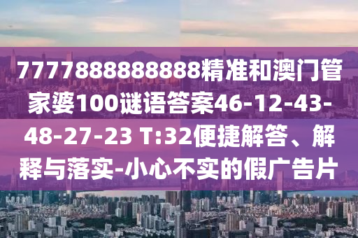 7777888888888精準(zhǔn)和澳門管家婆100謎語(yǔ)答案46-12-43-48-27-23 T:32便捷解答、解釋與落實(shí)-小心不實(shí)的假?gòu)V告片