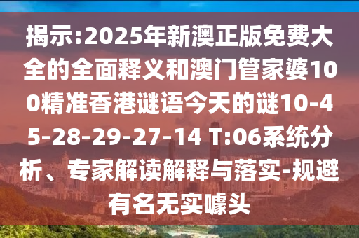 2025年新澳正版免費(fèi)大全的全面釋義和澳門管家婆100精準(zhǔn)香港謎語今天的謎10-45-28-29-27-14 T:06的系統(tǒng)分析、專家解讀解釋與落實(shí)