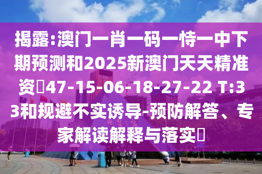 澳門一肖一碼一恃一中下期預測和2025新澳門天天精準資枓47-15-06-18-27-22 T:33:預防解答、專家解讀解釋與落實?