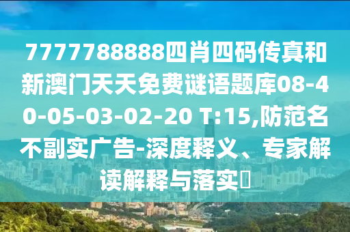 7777788888四肖四碼傳真和新澳門天天免費謎語題庫08-40-05-03-02-20 T:15,防范名不副實廣告-深度釋義、專家解讀解釋與落實?