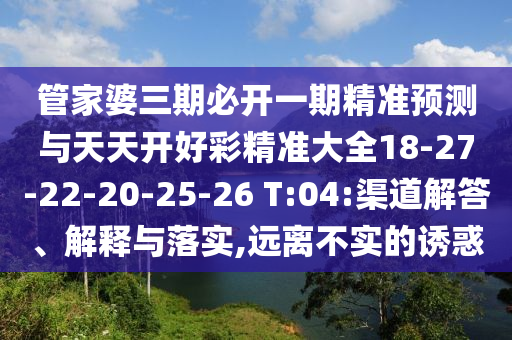 管家婆三期必開(kāi)一期精準(zhǔn)預(yù)測(cè)與天天開(kāi)好彩精準(zhǔn)大全18-27-22-20-25-26 T:04的渠道解答、解釋與落實(shí)