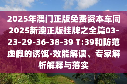 2025年澳門正版免費(fèi)資本車同2025新澳正版掛牌之全篇03-23-29-36-38-39 T:39:效能解讀、專家解析解釋與落實(shí)