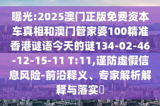 2025澳門正版免費資本車真相和澳門管家婆100精準香港謎語今天的謎134-02-46-12-15-11 T:11:前沿釋義、專家解析解釋與落實?