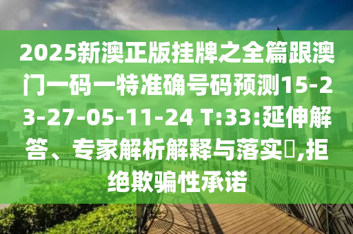 2025新澳正版掛牌之全篇跟澳門一碼一特準確號碼預測15-23-27-05-11-24 T:33的延伸解答、專家解析解釋與落實?