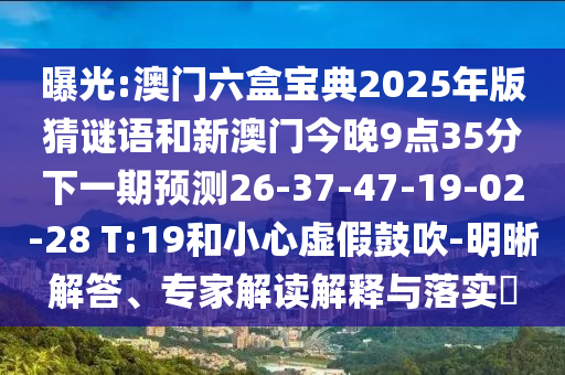 曝光:澳門六盒寶典2025年版猜謎語和新澳門今晚9點35分下一期預測26-37-47-19-02-28 T:19和小心虛假鼓吹-明晰解答、專家解讀解釋與落實?