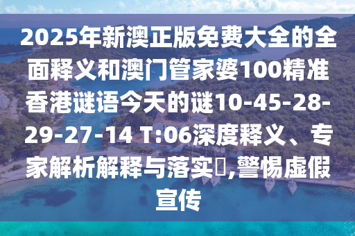 2025年新澳正版免費大全的全面釋義和澳門管家婆100精準香港謎語今天的謎10-45-28-29-27-14 T:06深度釋義、專家解析解釋與落實?,警惕虛假宣傳
