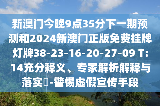 新澳門今晚9點35分下一期預測和2024新澳門正版免費掛牌燈牌38-23-16-20-27-09 T:14”以及警惕虛假宣傳手段的釋義、專家解析與落實