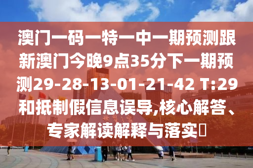 澳門一碼一特一中一期預測跟新澳門今晚9點35分下一期預測29-28-13-01-21-42 T:29:核心解答、專家解讀解釋與落實?
