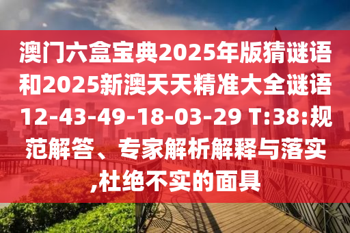 澳門六盒寶典2025年版猜謎語和2025新澳天天精準(zhǔn)大全謎語12-43-49-18-03-29 T:38:規(guī)范解答、專家解析解釋與落實(shí)