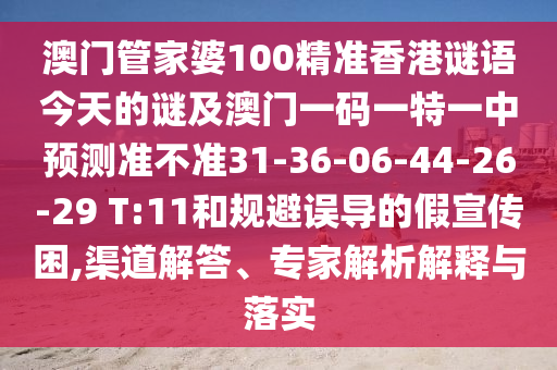 澳門管家婆100精準香港謎語今天的謎及澳門一碼一特一中預測準不準31-36-06-44-26-29 T:11的渠道解答、專家解析解釋與落實