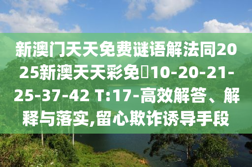 新澳門(mén)天天免費(fèi)謎語(yǔ)解法同2025新澳天天彩免費(fèi)10-20-21-25-37-42 T:17-高效解答、解釋與落實(shí),留心欺詐誘導(dǎo)手段